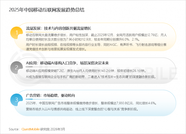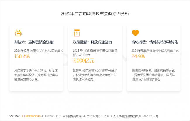 5.2 行业投放特征阐发:投放布局改变,用户利用粘性同比增加,《JJ象棋》《三角洲步履》《羊了个羊》用户规模翻倍增加;达到14.3分钟。5.1 全体营销市场:2025互联网告白市场正在宏不雅层面维持稳步增加的新常态QuestMobile数据显示,AI手艺赋能的漫剧赛道正成为新增加点